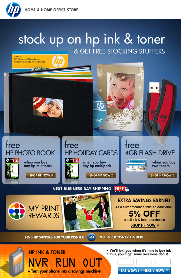 Offer is good while supplies last. Offer is also subject to change or cancellation at any time. See product page for details. Prices shown may include applicable instant savings. Restrictions apply to sale items and are subject to change without notice. Offers are valid through 11/7/2009, while supplies last. Offers are subject to change or cancellation at any time. Customer chooses free HP Holiday Photo Cards or HP Photo Book. This offer applies to purchase of ink multipacks priced at $31.99 or greater. Limit two (2) gifts per customer. See product page for details. See the My Print Rewards program page for a complete summary of terms and conditions at www.hpdirect.com/myprintrewards.
