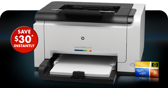 ** Gift card offer valid through 1/14/2011 on select Laser printers regularly priced $199.99 - $298.99 for $30 card and on select models $299.99 and above at $50 card. Must buy qualifying printer to receive free gift card. Offer is also subject to change or cancellation at any time. HP LaserJet Pro CP1025nw is a qualifying printer, gift card will be automatically added to the shopping cart.