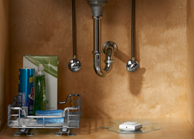 The Lyric™ Wi-Fi Water Leak and Freeze Detector installs under your sink in just a few minutes. Combining it with other detectors is equally easy, so you can always be in control of your home.