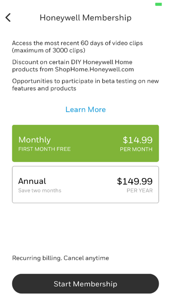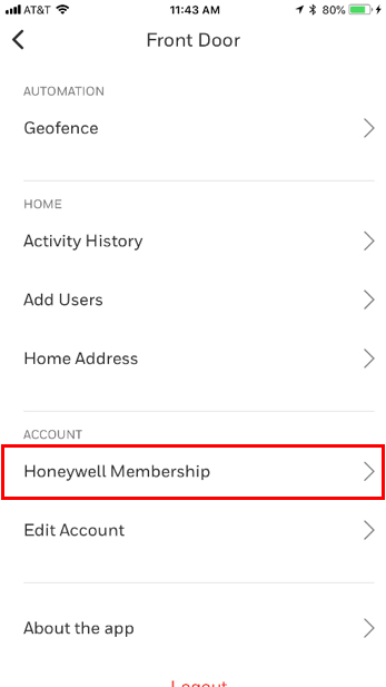 | In the main menu of your Honeywell Home app, click Account in the upper left corner, then select Membership.