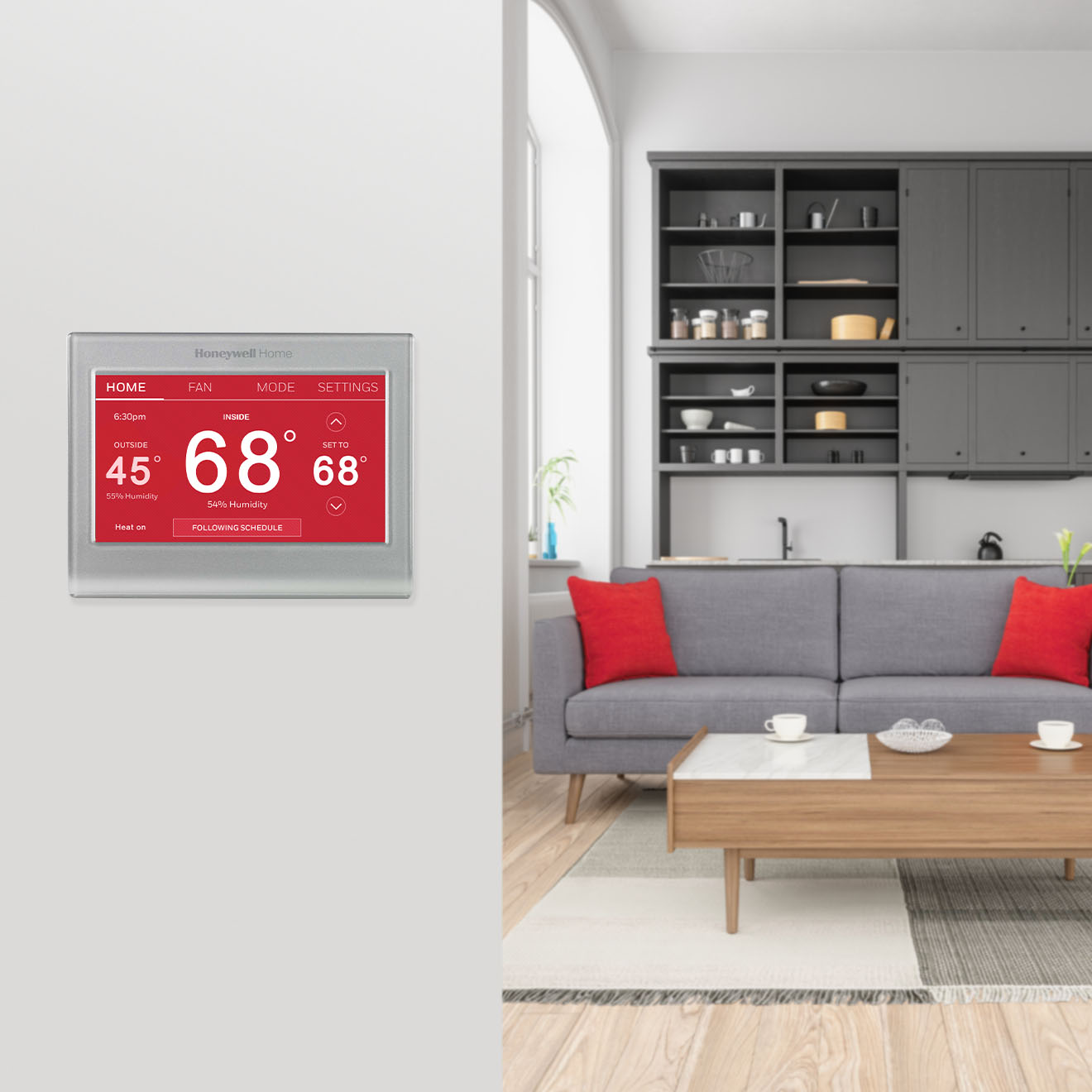 *Offer valid at www.resideo.com and www.honeywellhome.com Receive $40 off WiFi Color Touchscreen Thermostat (RTH9585) from January 31, 2022 through May 1, 2022. Limit three (3) per customer. Promotion applies to the order value before taxes and shipping. Valid only on purchases shipped to a valid shipping address in the 50 United States and the District of Columbia. Offer may not be redeemed for cash and may not be combined with any other offers or promotions.
