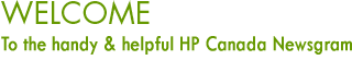 Welcome to the HP Canada Newsgram - a free e-newsletter filled with handy tips, creative ideas for projects, relevant articles based on your products and info on new products. |