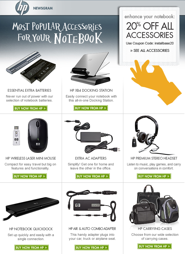 SUBJECT LINE: > New Notebook John? - Enhance it with our Most Popular Accessories