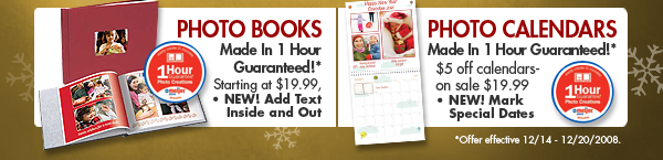 Any offer and pricing quoted are offered by the retailer for in-store orders placed on the kiosks in their photo center and subject to change. Please visit your local store's photo center or see their Sunday ad for details.