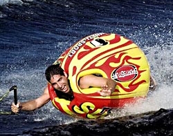 Tubing has become increasingly popular over the last few years -- and it's easy to see why. There's no simpler way to enjoy the thrill of towed water sports. Just hop in, hang on and get ready for the ride of your life! Also responsible responsible for attracting more and more on-the-water types to the tubing fold are the wild and wacky shapes and designs. Whether your tube of choice resembles a hot dog, a flying saucer or even a sumo wrestler, you can count on unlimited thrills, spills and fun. Take a closer look at what's fueling this water sports phenonmenon and some of the new, exciting tubes available: More >>