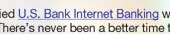 *U.S. Bank Free Checking, no monthly maintenance fees or minimum balance requirements. Non-routine transaction fees may apply. ** Free for existing and new consumer and sole proprietor accounts only. Please Note: At U.S. Bank, protecting your privacy is our priority. To ensure your safety and protection, we will never request your Personal ID, PIN or Password via an email and strongly suggest that you do not share this information with anyone, under any circumstances. Sharing your Personal ID and Password will provide the recipient with full access to your account. If you should receive an email requesting this information, please call U.S. Bank Customer Service immediately at 1-800-USBANKS. You are receiving this email because you have requested this information. To unsubscribe from this newsletter, or to modify your U.S. Bank email preferences, click here. View the U.S. Bank Privacy Policy. U.S. Bank Member FDIC, Equal Housing Lender U.S. Bank BC MN H22N 800 Nicollet Mall, Suite 1500 Minneapolis, MN 55402-7014 |