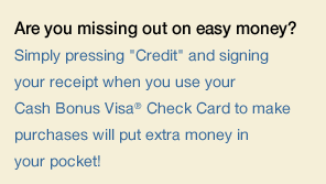 "Credit" when you use your Cash Bonus Check Card! |