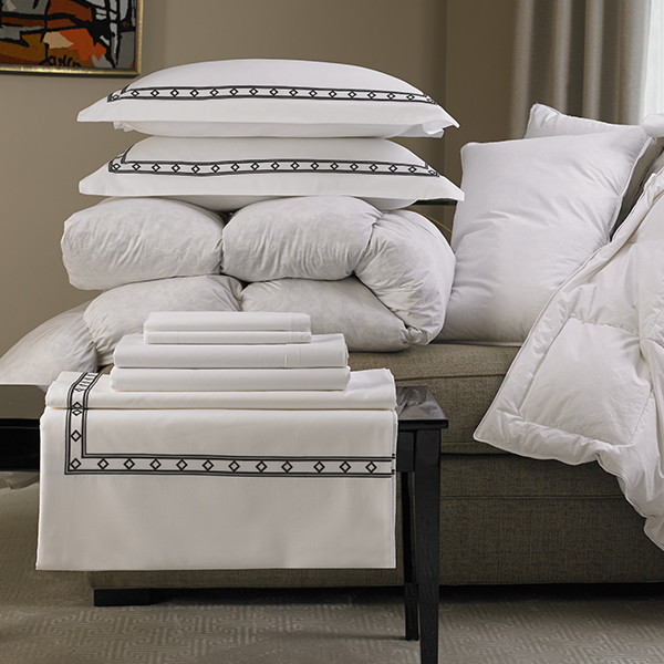Elevate your bedroom style with elegant bedding, pillows, Frette linens, and more.