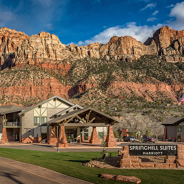 Hike Zion National Park and explore its majestic rock formations while staying just a mile from the preserve's entrance at SpringHill Suites Springdale Zion National Park.